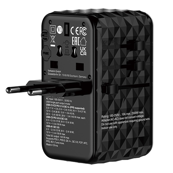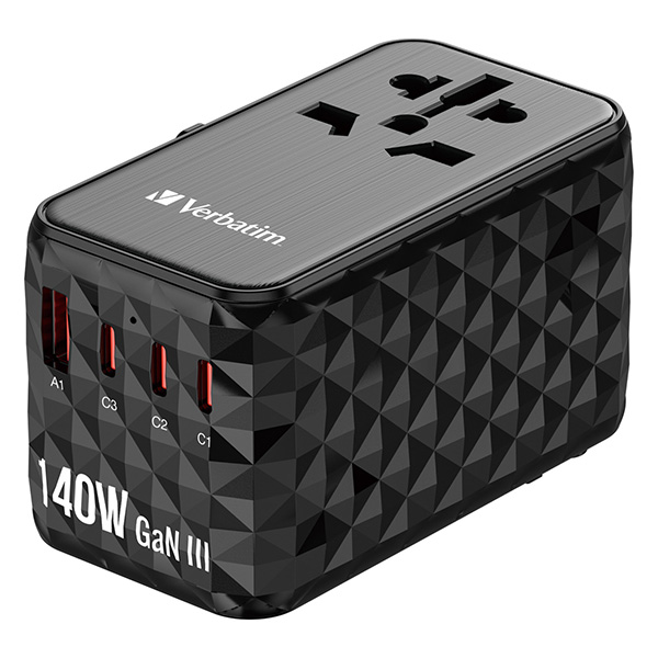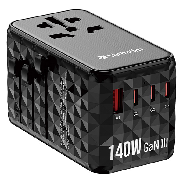 Verbatim, Universal-Reiseadapter UTA-10 GaN III 2x USB-C PD a QC 4+, 1x USB-C PD 3.0, 1x USB-A QC, schwarz, 140 W, damaged case B,