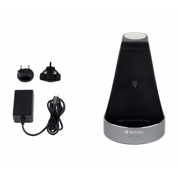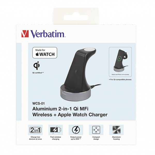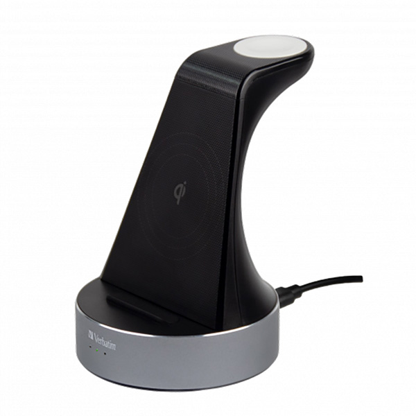 Verbatim, 2-in-1-Ladestation, für iPhone und hodinky Uhren Apple Watch, schwarz, 9V, 20W, Zertifizierung MFi a Qi, EOL