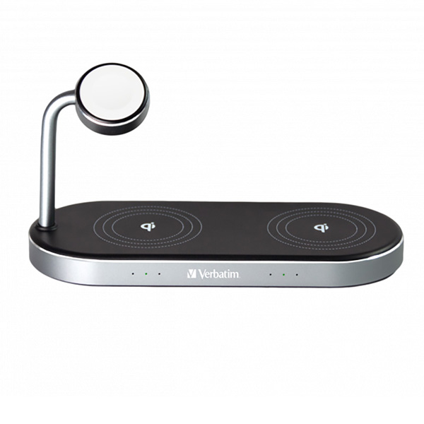 Verbatim, 3-in-1-Doppelladepad, schwarz, 9V, 35W, Zertifizierung MFi a Qi, EOL