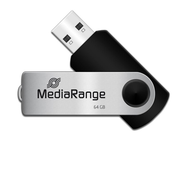 MediaRange USB flash disk, USB USB 2.0, 64GB, schwarz, MR912, USB A, swivel