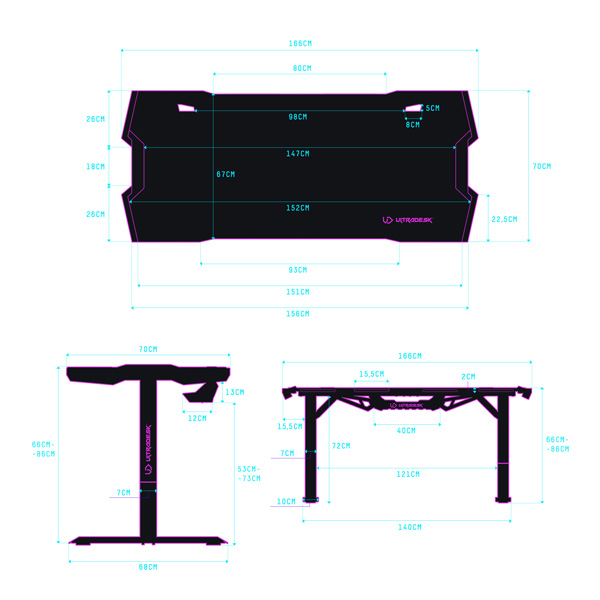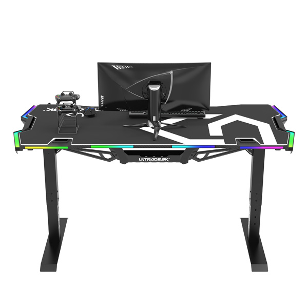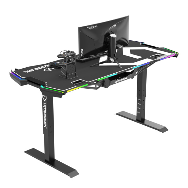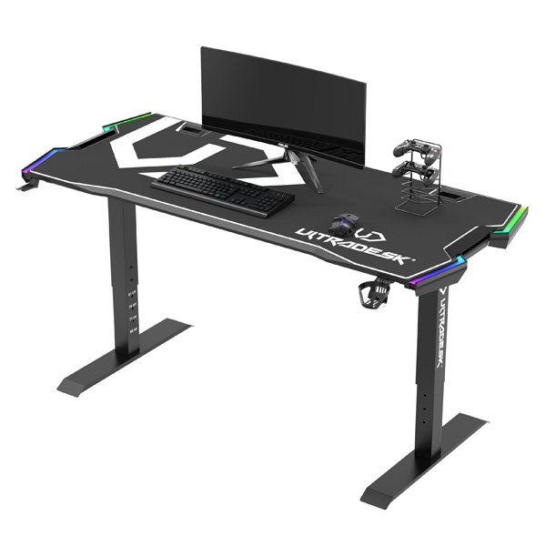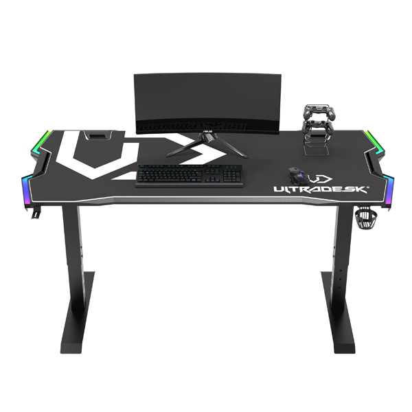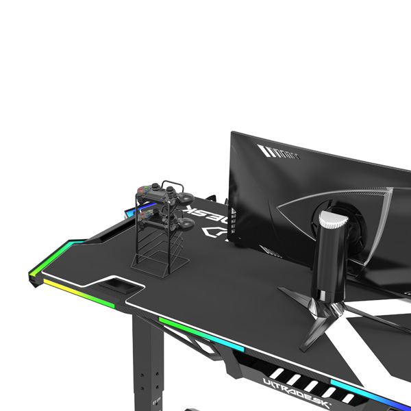 ULTRADESK Spieltisch FORCE - Schwarz, 166x70 cm, 66-86 cm, 5 Höhenstufen, mit XXL-Mauspad, RGB-Beleuchtung, EOL