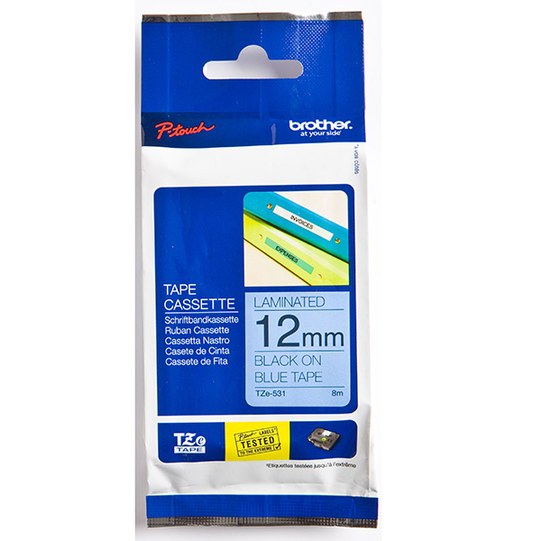 Brother Original Schriftband, Brother, TZE-531, schwarz Druck/blau Unterl., laminiert, 8m, 12mm