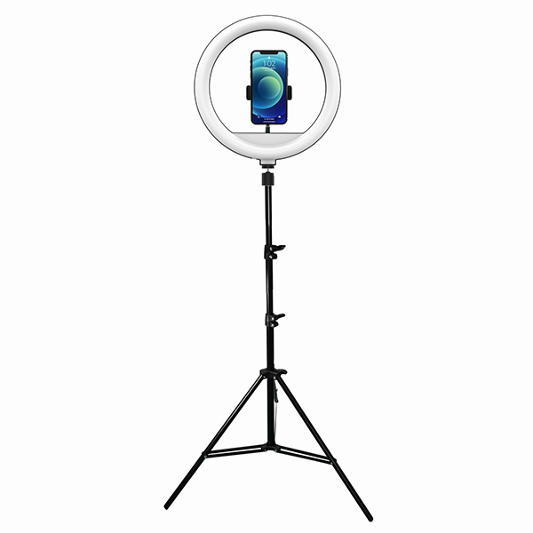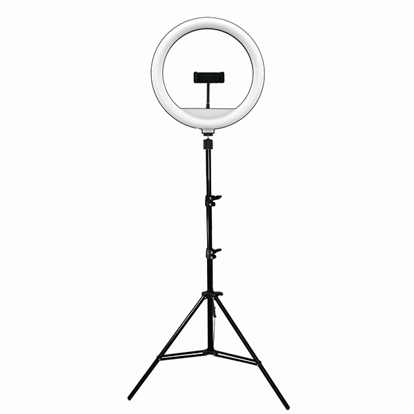 LED Ringlicht 13" Machen Sie gerne Selfies oder drehen Sie Videos für soziale Netzwerke? Dann benötigen Sie eine professionelle Beleuchtung, die Ihren Augen Glanz verleiht. Das runde LED-Licht mit verstellbarem Stativ und Handyhalter sorgt für eine gleichmäßige Ausleuchtung Ihres Gesichts. Sie können zwischen verschiedenen Weißlicht-Farbtemperaturen wechseln und die Helligkeit anpassen – alles bequem mit der Fernbedienung steuerbar.