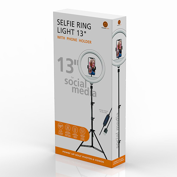 Powerton Ringlicht 13", Temperatur- und Helligkeitseinstellung, Telefonhalter und Stativ, damaged case typ B