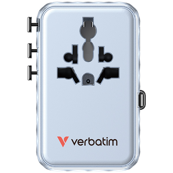 Verbatim, Reiseadapter Universal Charge ,n, Travel 2x USB-C, 2X USB-A + 1xPapierzufuhr-Set mit iUSB-C, blau, 100 W