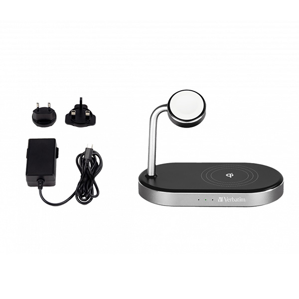 Verbatim, 3-in-1-Ladestation, für iPhone und hodinky Uhren Apple Watch, schwarz, 15V, 44W, Zertifizierung MFi a Qi, EOL