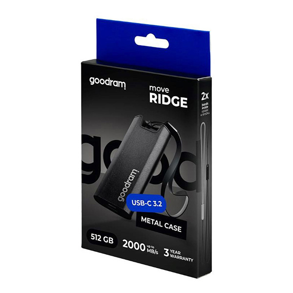 DDS Externe Goodram Move Ridge, SSDR-GMRE-512-K0, 512GB, schwarz, USB-C 3.2