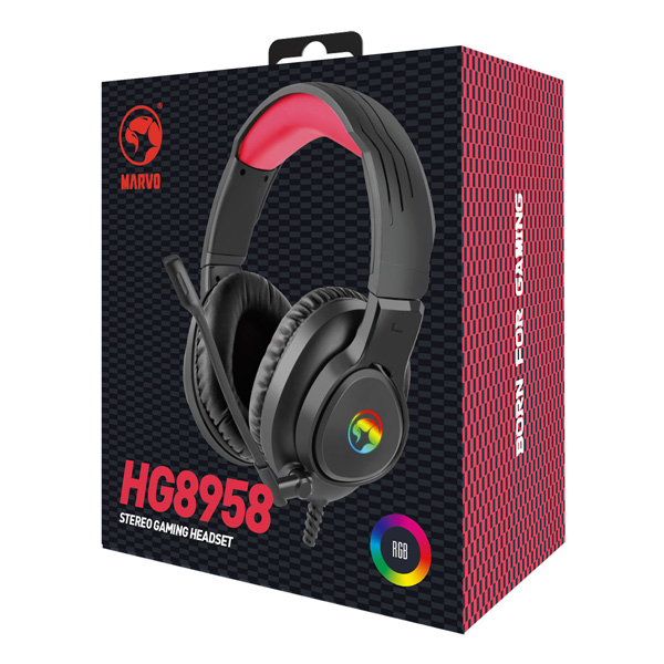 Marvo HG8958 Kophörer mit Mikrofon, wire, schwarz, Game, damaged case typ B, 3.5 mm jack + rozdvojka + USB, EOL