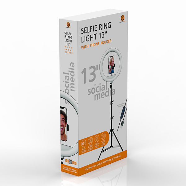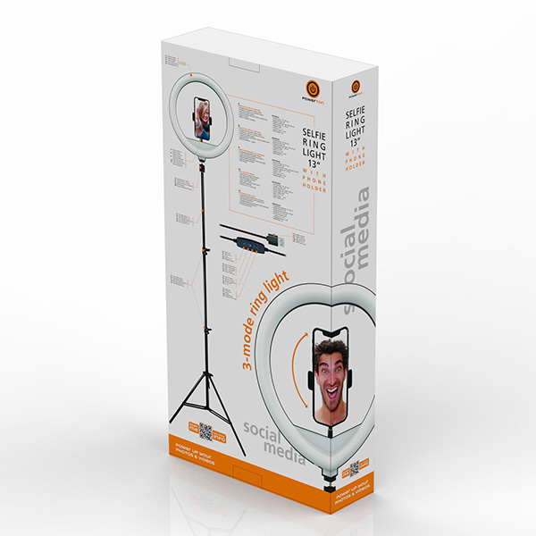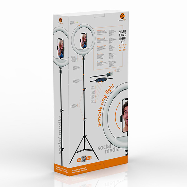 Powerton Ringlicht 13", LED weiss, gross, Temperatur- und Helligkeitseinstellung, Telefonhalter und Stativ, damaged case typ B